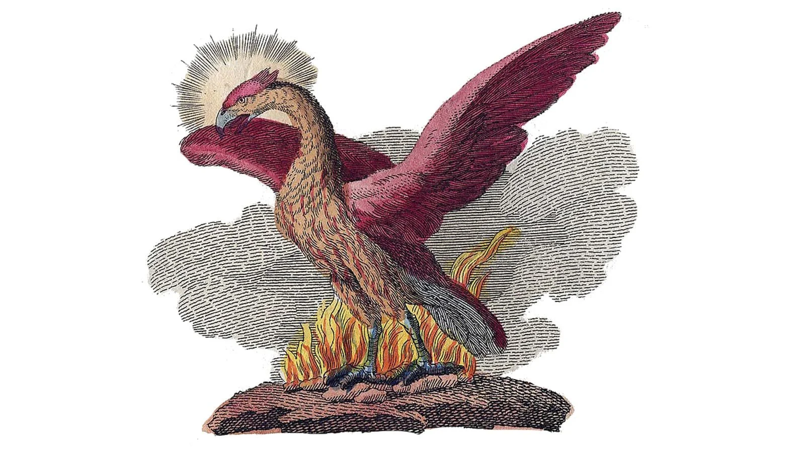 Et, au-dessus, notre cher phoenix, suspendu tel un cimier héraldique, aux ailes espacées comme pour protéger l’ensemble de la création et surtout une flamme ardente en son sein. Une couronne symbolisant la monarchie est toujours présente. Mais ici, pourquoi un pheonix ? Quelle symbolique derrière le choix de ce rapace fantastique ?