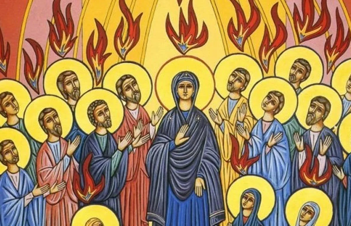 Ce même rouge feu marque l’intervention de Dieu. Il est lumière et souffle de vie, puissant et chaleureux. Rouge de l’amour divin. On peut penser aux langues de feu de la Pentecôte qui figurent Dieu.