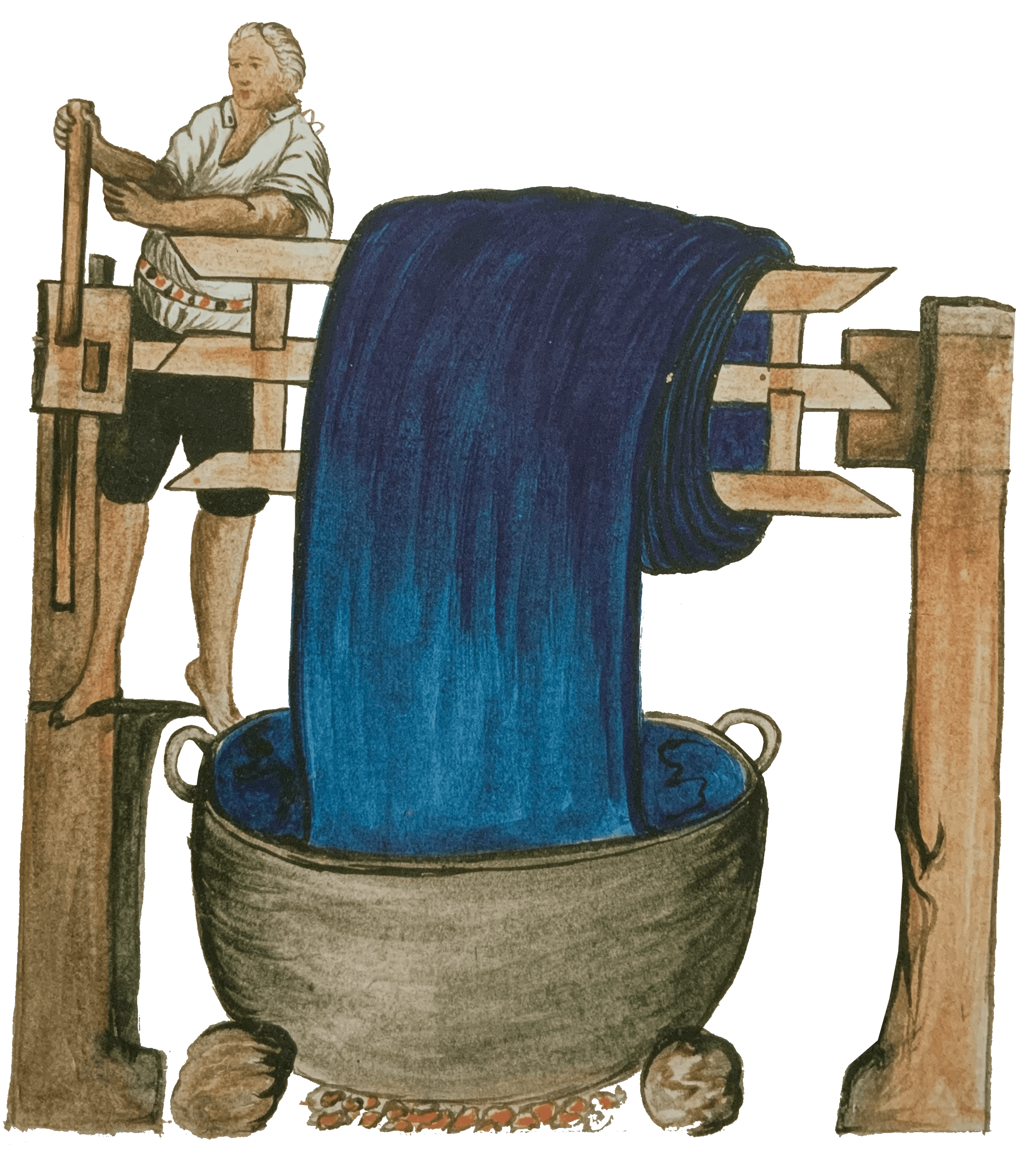 Mais la vraie révolution c’est l’indigo. Elle débute avec les peuples du Proche Orient, car c’est une matière qui provient d’un arbuste de cette région: l’indigotier. Il pousse en buisson et ne dépasse pas les deux mètres. Son principe colorant est bien plus puissant que celui de la guède. Sa teinte est solide, et surtout, ne nécessite pas de mordançage pour faire pénétrer la couleur: l’exposer à l’air libre suffit.